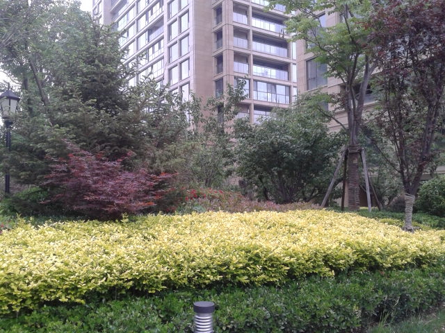 綠城·紫薇廣場風(fēng)華苑北區(qū)室外景觀工程位于膠州市海口區(qū)的核心位置,是膠州市最核心的地段,地理位置優(yōu)越,北靠云溪河,南臨膠州市委市政府,緊鄰三里河公園和膠州市三大中心,即會展中心、文化中心和體育中心。該項目景觀工程總面積約23500㎡(含外圍)。其中,綠化面積約計 15200㎡,土建面積8300㎡。綠化率達65%,工程造價為1057.5萬。工程自2013年8月25日開工,于2013年12月26日竣工。該工程的建設(shè)單位為青島綠城膠州灣房地產(chǎn)開發(fā)有限公司;設(shè)計單位為青島綠城建筑設(shè)計有限公司;施工單位為浙江三葉園林建設(shè)有限公司。