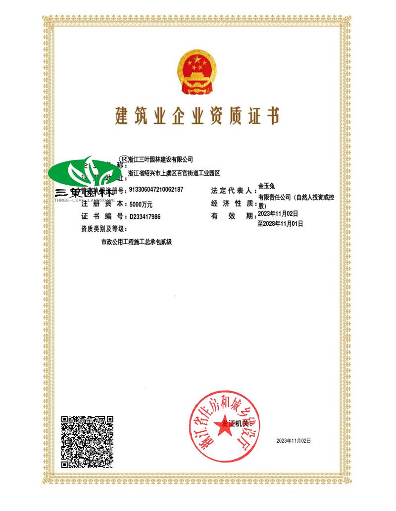 11月2日,由浙江省住房與城鄉(xiāng)建設(shè)局認定的市政公用工程總承包貳級資質(zhì)三葉園林已獲批,這項資質(zhì)的獲得,預(yù)示著三葉園林今后市政公用工程總承包貳級范圍內(nèi)工作。同時,為三葉園林的企業(yè)晉升市政公用工程施工總承包一級打下基礎(chǔ),更進一步擴大了企業(yè)的業(yè)務(wù)范圍,增強了企業(yè)的綜合競爭實力。